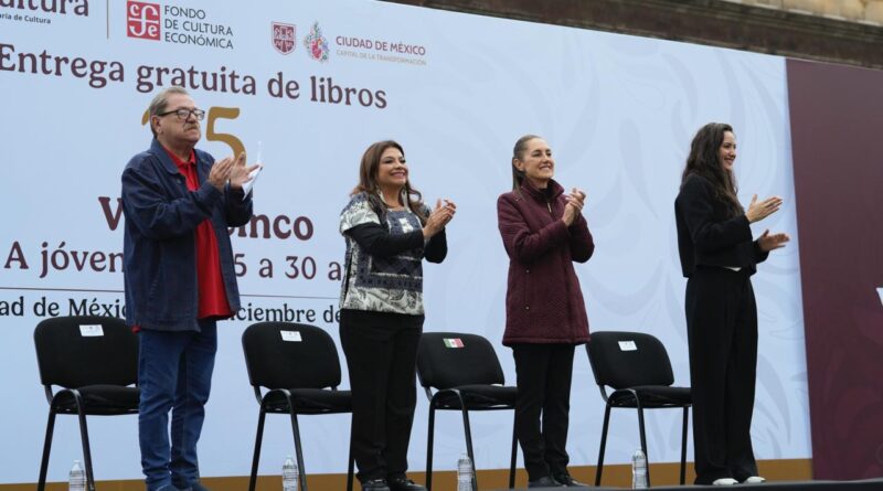 Ciudad de México.- La Presidenta Claudia Sheinbaum Pardo encabezó la entrega gratuita de 2.5 millones de libros a jóvenes de 15 a 30 años de Latinoamérica de la colección 25 para el Veinticinco, del Fondo de Cultura Económica (FCE), para hacer de la lectura un acto de transformación y una reflexión colectiva sobre la gran revolución de las conciencias que vive el país.
