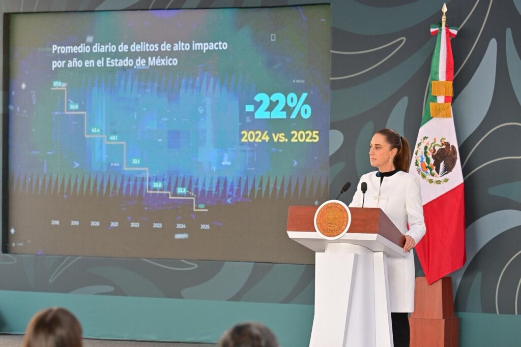 Durante la Mañanera del Pueblo de la Presidenta Claudia Sheinbaum Pardo, en Ecatepec, Marcela Figueroa Franco, Titular del SESNSP, informó que el Estado de México pasó de 7 a 3 homicidios diarios en promedio, siendo diciembre de 2025 el mes más bajo del periodo referido.